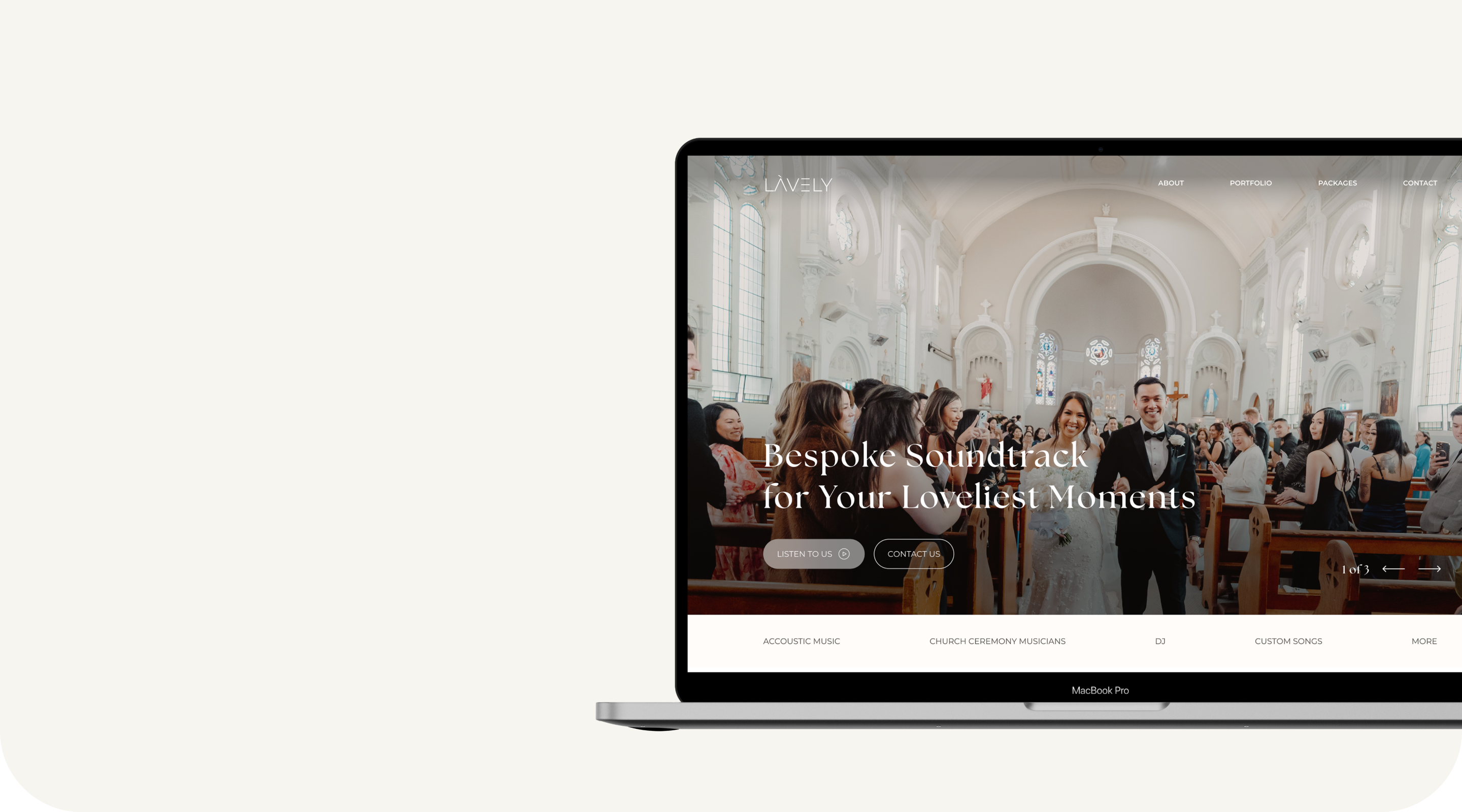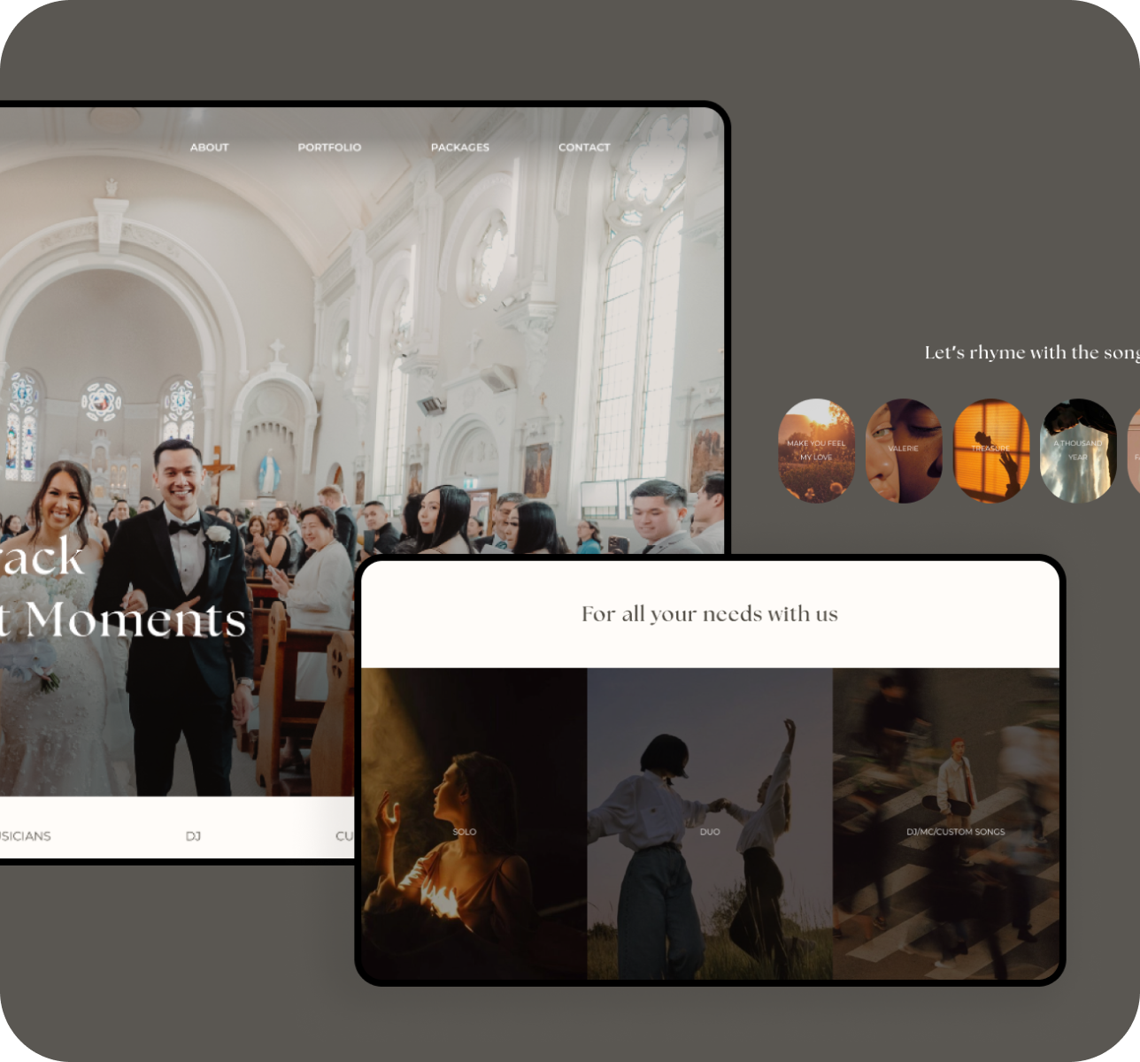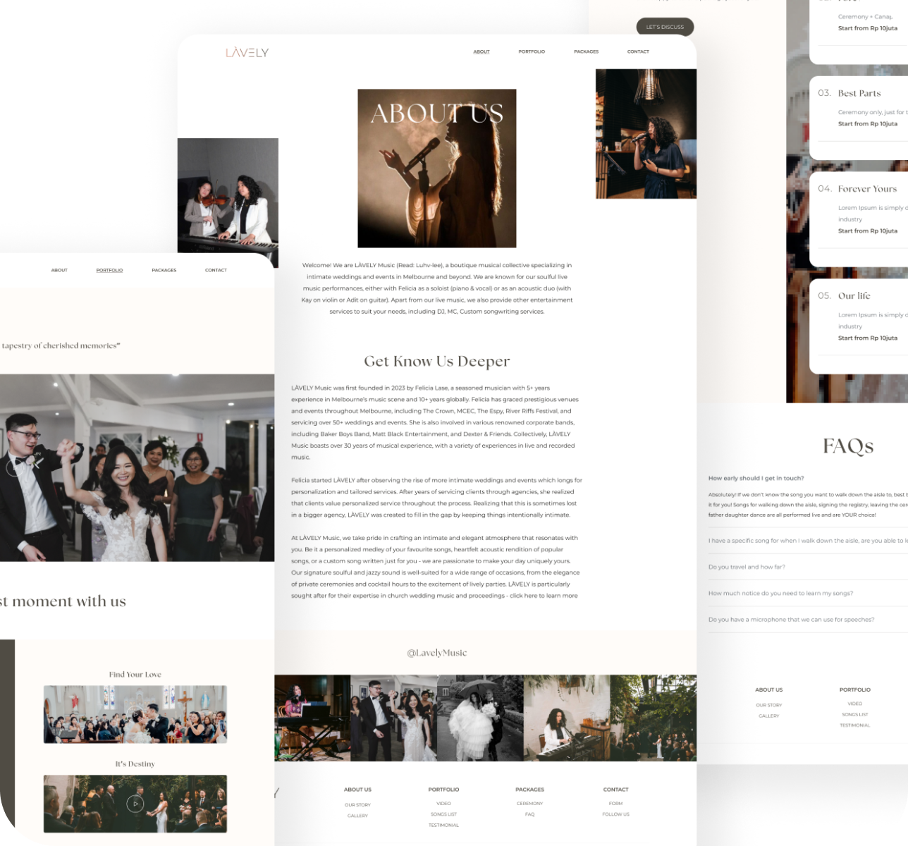 This website includes a sleek About page, a structured Packages page with customizable music, and a dynamic Portfolio of past performances for a seamless experience.